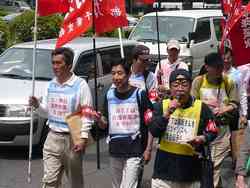N関労は、集会参加後、新橋土橋までデモ行進。「憲法改悪反対」「9条を守れ」「医療・年金改悪反対」「鉄建公団訴訟に勝利しよう」「50歳退職・再雇用制度を廃止しろ」「企業年金改悪反対」「賃金制度改悪反対」「木下さんを職場に戻せ」「介護休業法を遵守し、Hさんを品川ツインズへ配転しろ」などと、N関労のメーデーアピールを街行く人々に訴えた。 →N関労メーデーアピール |
